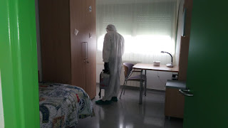 Para que todos estemos más tranquilos, el Ayuntamiento de Zaragoza, con la colaboración de Plena Inclusión Aragón, llevó a cabo una desinfección de nuestra residencia con la empresa La Aurora.