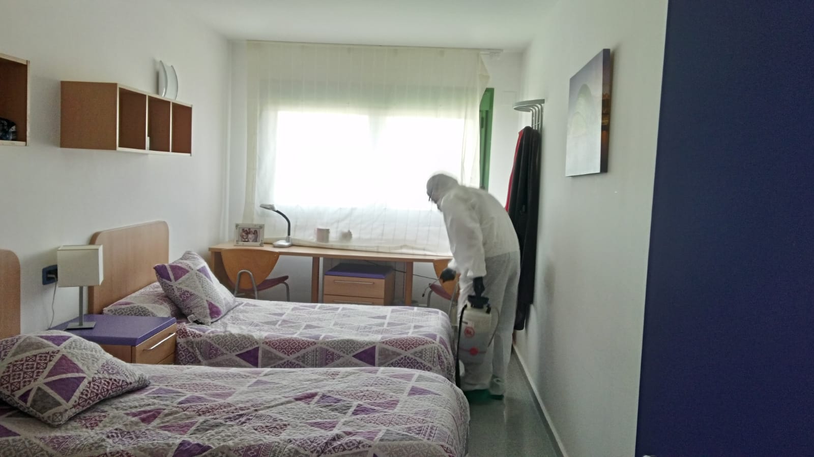 Para que todos estemos más tranquilos, el Ayuntamiento de Zaragoza, con la colaboración de Plena Inclusión Aragón, llevó a cabo una desinfección de nuestra residencia con la empresa La Aurora.