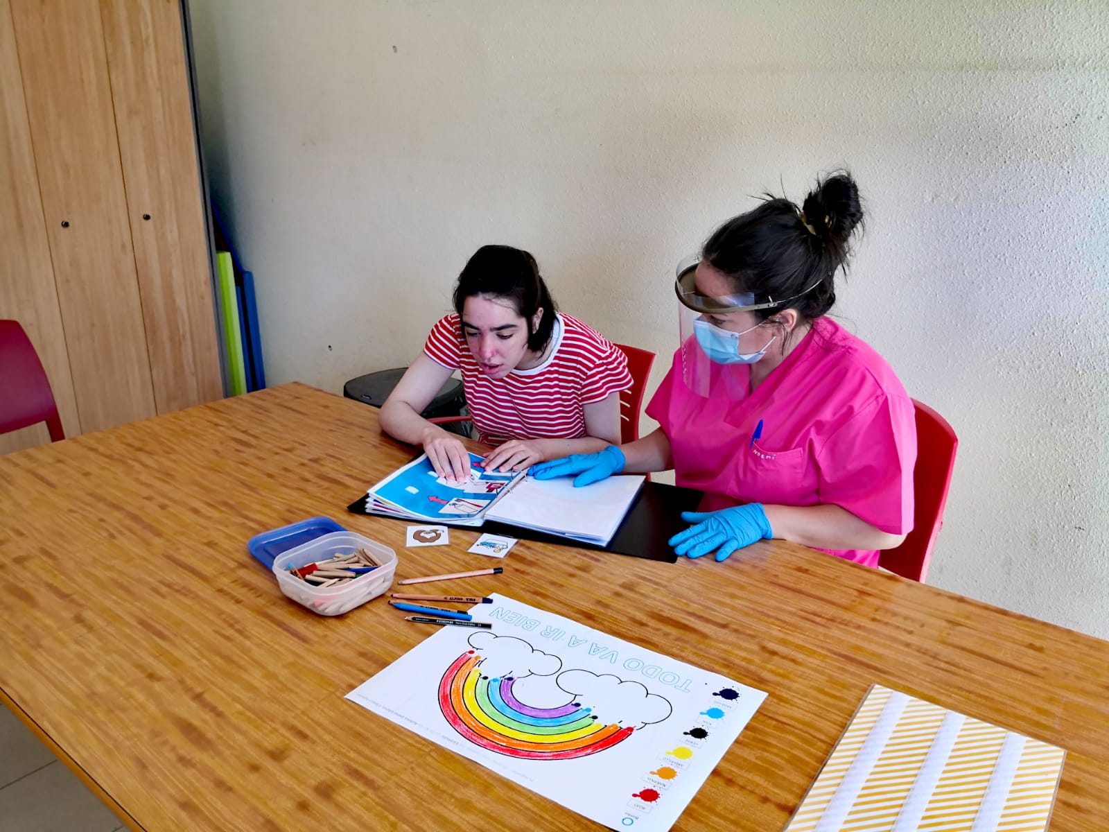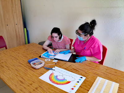 De acuerdo a las medidas vigentes actualmente, la actividad seguirá siendo no presencial en el Centro Educativo hasta septiembre, y fue también no presencial en Centro Ocupacional y Centro de Día hasta que se pudieron reabrir a finales de junio, con una adaptación total de aforos al 50%, controles, separación de espacios, y habilitación de materiales de uso individual para cada usuario. Y, por supuesto, en la Residencia la atención ha sido permanente, presencial con todos los protocolos adaptados a unas circunstancias tan especiales.