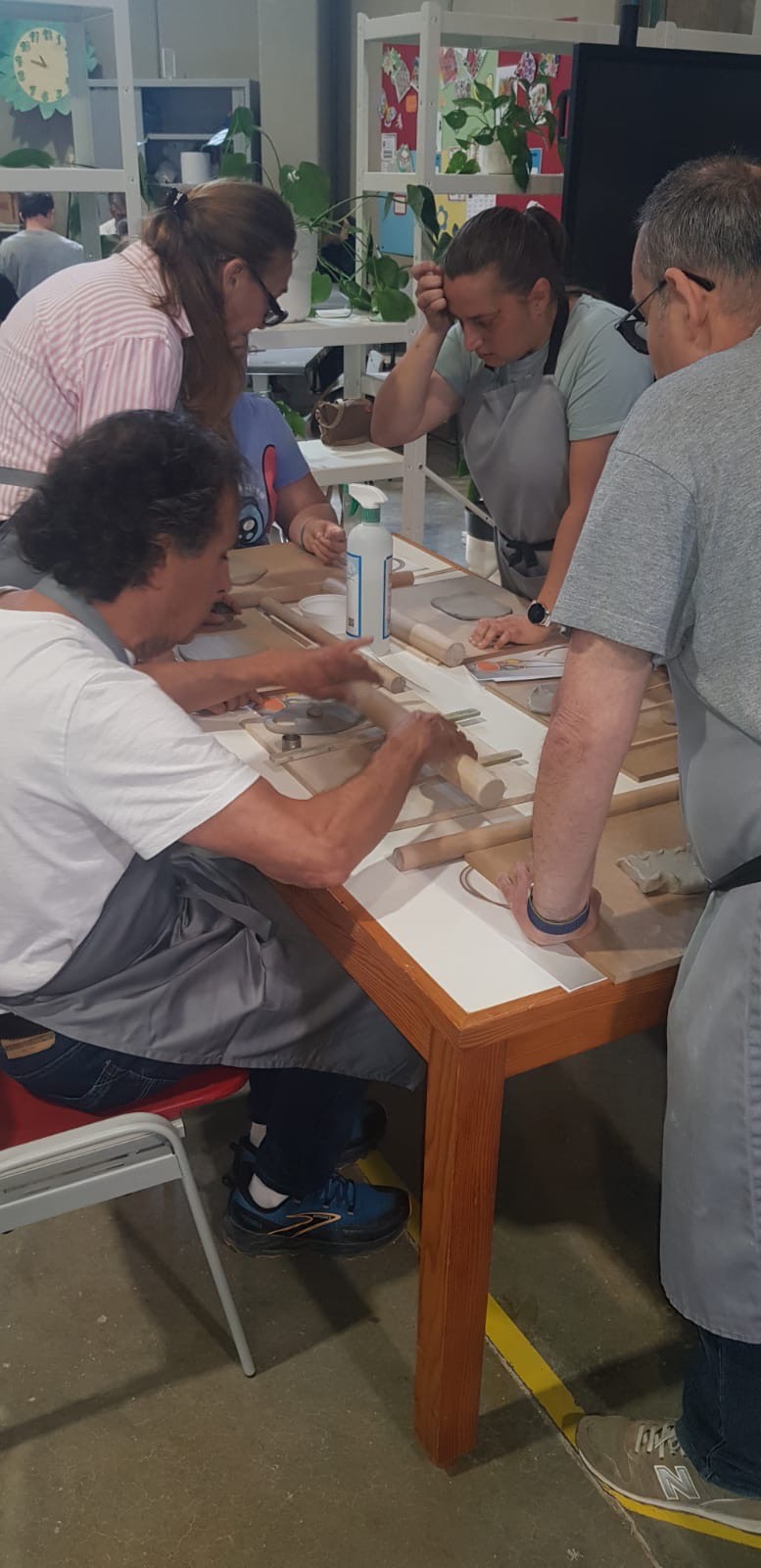 La jornada práctica, en la que participaron 15 alumnos y alumnas de la Universidad Senior de la USJ, tuvo lugar el pasado 16 de mayo en el taller de Fundación CEDES. Las personas con discapacidad intelectual y autismo que forman parte del equipo artesano de MOS, bajo la dirección de la ceramista Sara Monge, compartieron su proceso creativo con los estudiantes senior, que pudieron conocer paso a paso el desarrollo de un colgante que será presentado conjuntamente por ambas entidades como símbolo de esta colaboración.