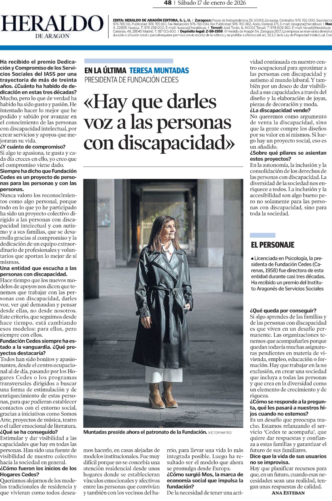 La presidenta de Fundación CEDES, Teresa Muntadas, protagoniza una entrevista publicada en Heraldo de Aragón en la que analiza la evolución del modelo de atención a las personas con discapacidad intelectual y autismo en Aragón, así como los retos pendientes y el papel de las entidades sociales como agentes clave para garantizar derechos e impulsar una inclusión real.