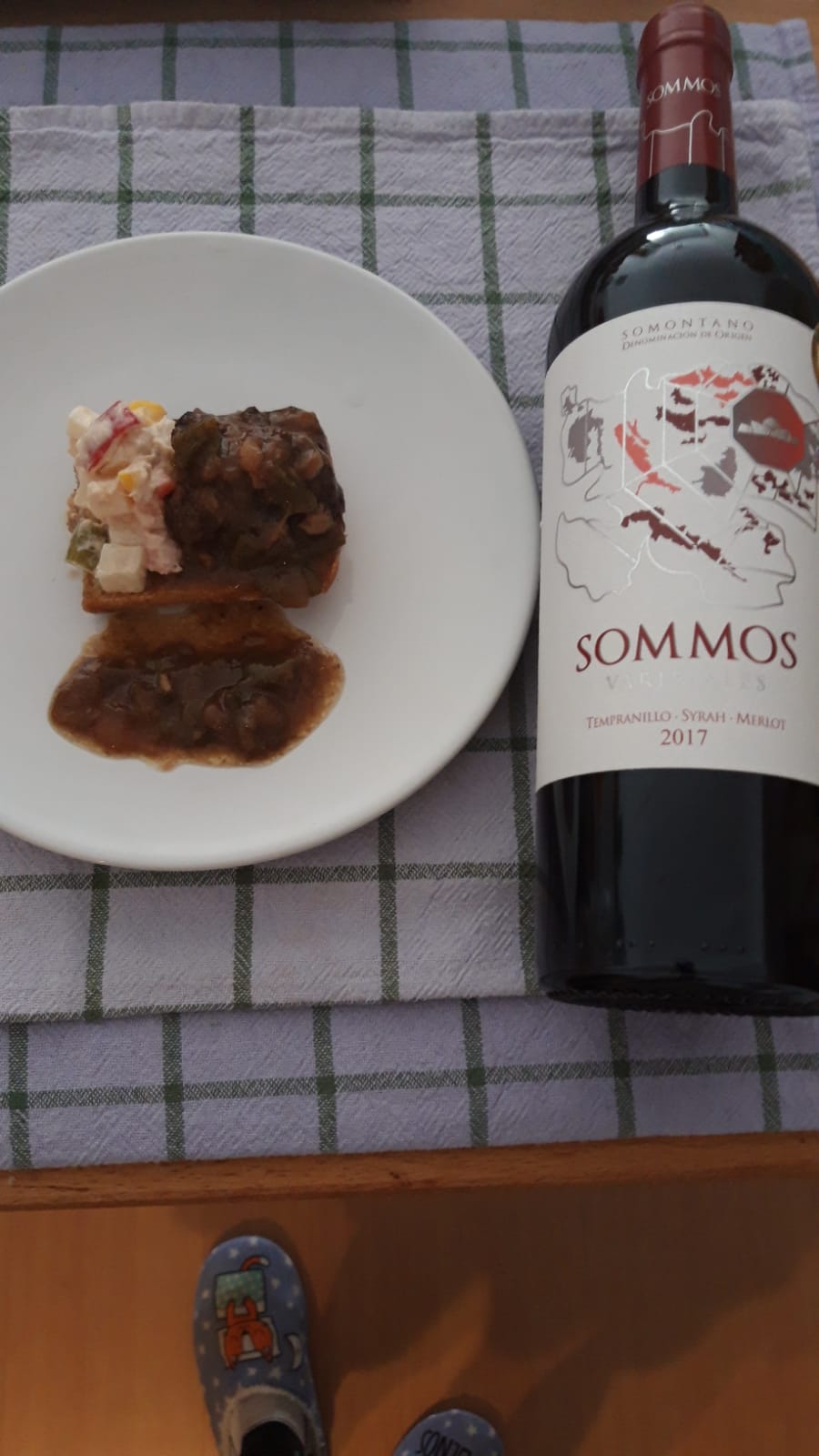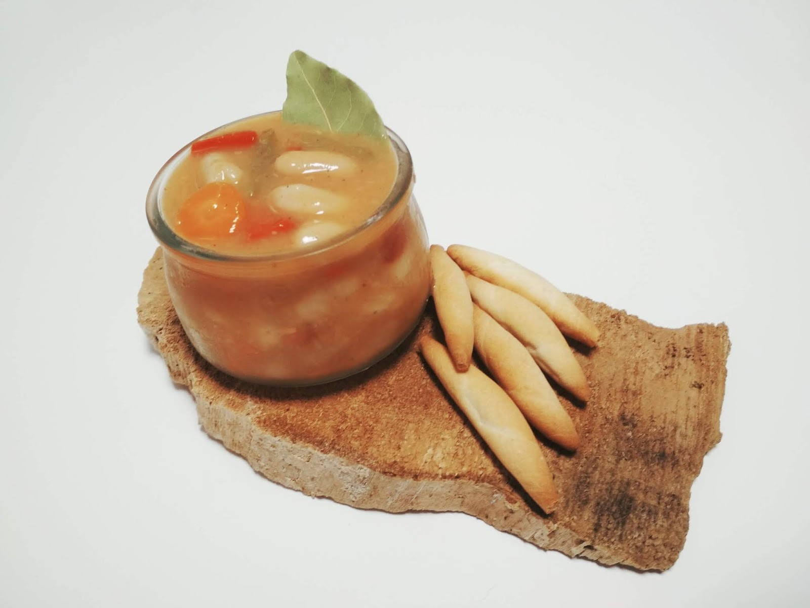 · Alubias veganas con pimiento rojo, verde, zanahoria y cebolla con unos colines para acompañar.