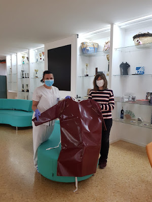 También a través de Plena Inclusión, nos ha llegado la colaboración de la empresa aragonesa Toldos Lucas, a la que trasladamos nuestra gratitud, que nos ha donado 3 batas de plástico reutilizables elaboradas por ellos y que son muy difíciles de conseguir.